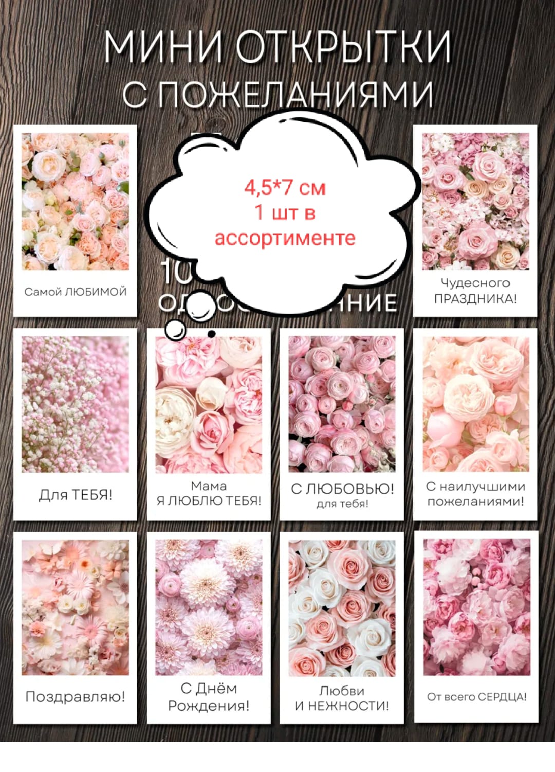 —Открытка в ассортименте Пожелания , 4,5*7 см, 1 шт